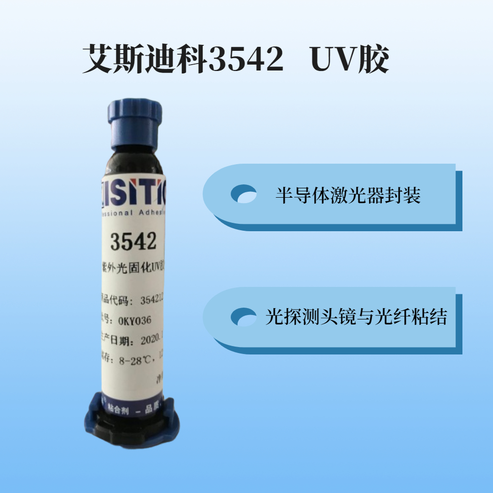 艾斯迪科3542是一種單組分粘合劑,專為PLC包裝、半導體激光器封裝設備,其良好的固化特征滿足了快速裝配的行業要求的同時,保證了令人滿意的產品合格率。